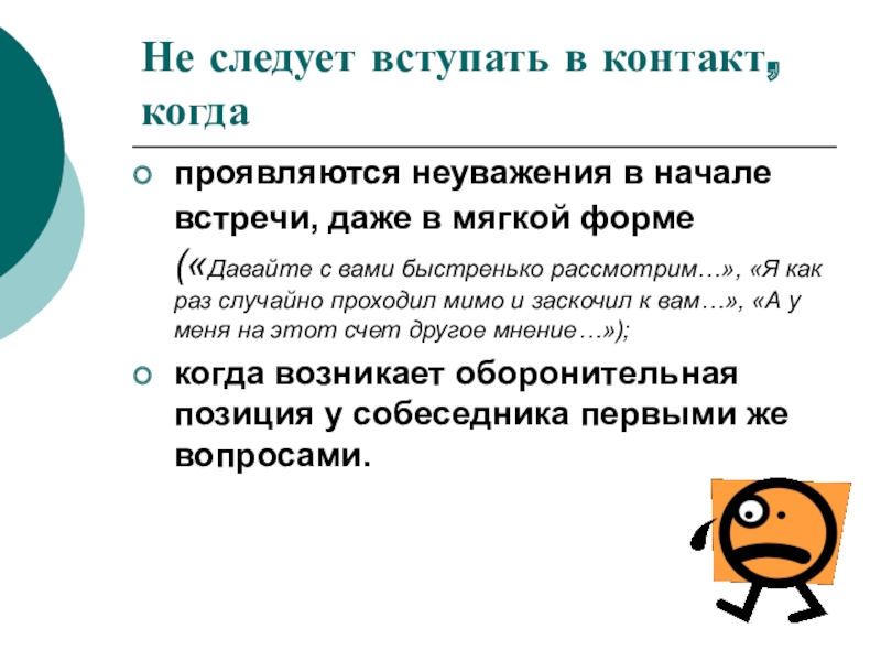 когда возникает оборонительная позиция у собеседника первыми же вопросами.