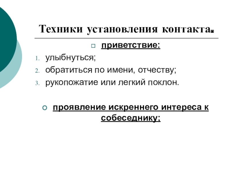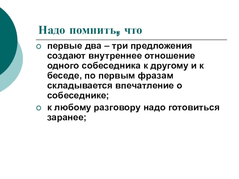 собеседника к другому и к беседе, по первым фразам складывается впечатление о собеседнике;
