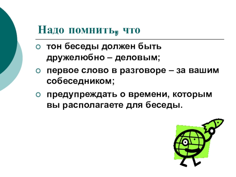Слайд 11тон беседы должен быть дружелюбно – деловым;
