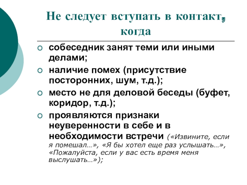 проявляются признаки неуверенности в себе и в необходимости встречи («Извините, если я помешал…», «Я бы хотел еще раз услышать…», «Пожалуйста, если у вас есть время меня выслушать…»);