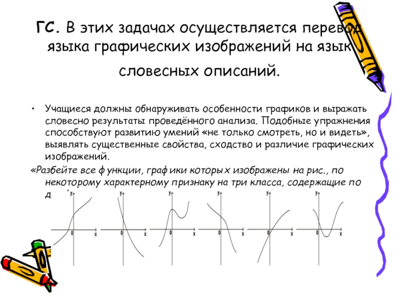 Слайд 13ГС. В этих задачах осуществляется перевод языка графических изображений на язык