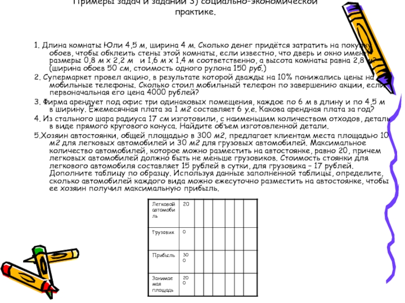 Слайд 20Примеры задач и заданий 3) социально-экономической практике.