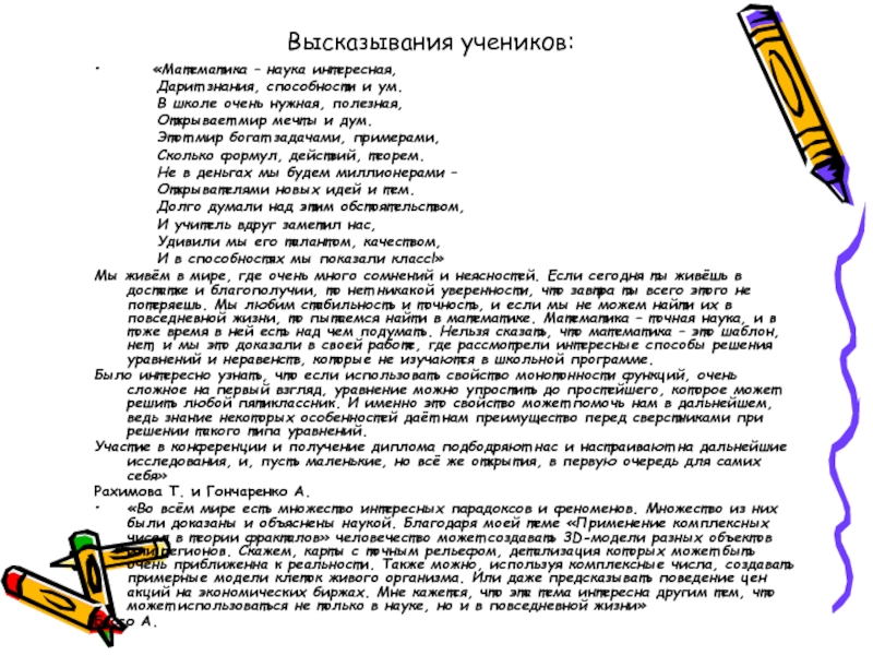 Слайд 28Высказывания учеников: