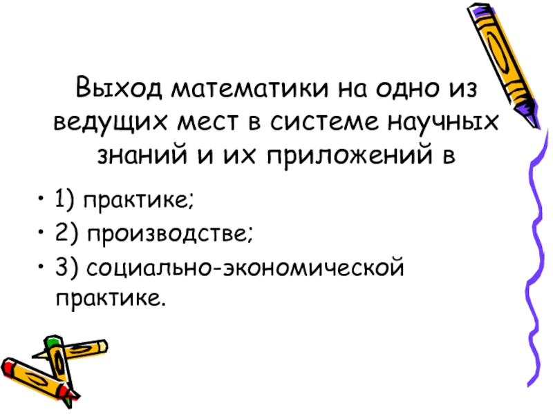 Слайд 17Выход математики на одно из ведущих мест в системе научных знаний