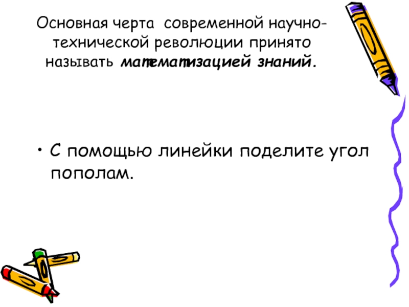 Слайд 8Основная черта современной научно-технической революции принято называть математизацией знаний.