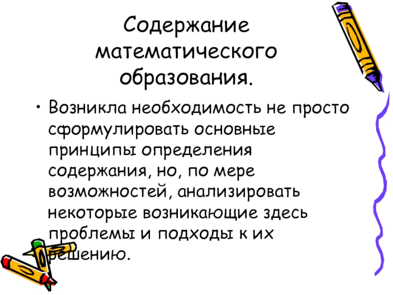 Возникла необходимость не просто сформулировать основные принципы определения содержания,