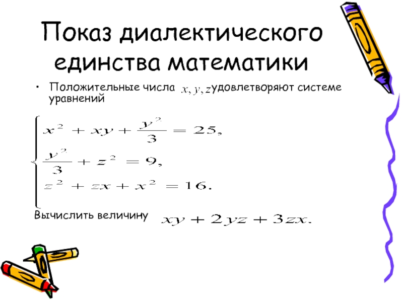 Слайд 26Показ диалектического единства математики