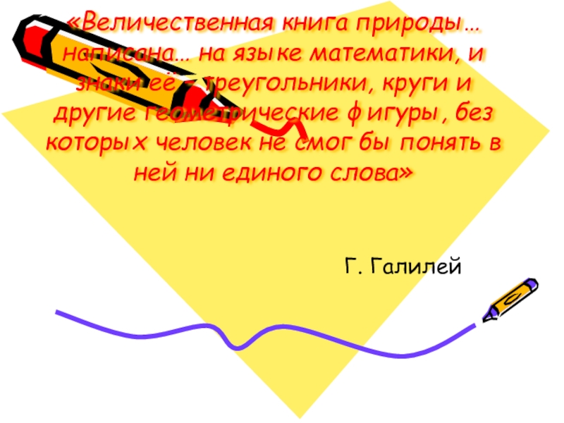 Слайд 6«Величественная книга природы… написана… на языке математики, и знаки её –