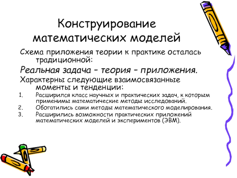 Расширились возможности практических приложений математических моделей и экспериментов (ЭВМ).
