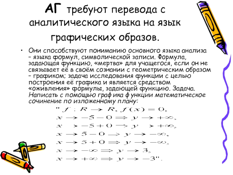 Слайд 12АГ требуют перевода с аналитического языка на язык графических образов.