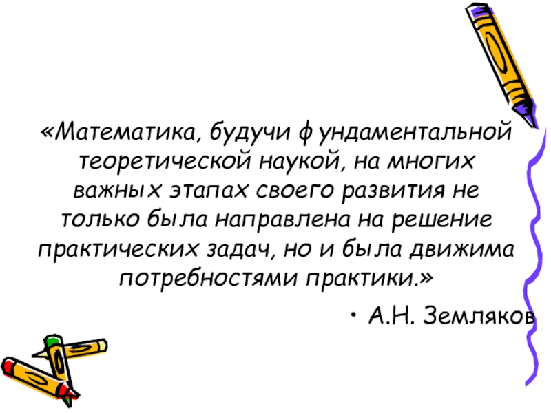 Слайд 21«Математика, будучи фундаментальной теоретической наукой, на многих важных этапах своего развития
