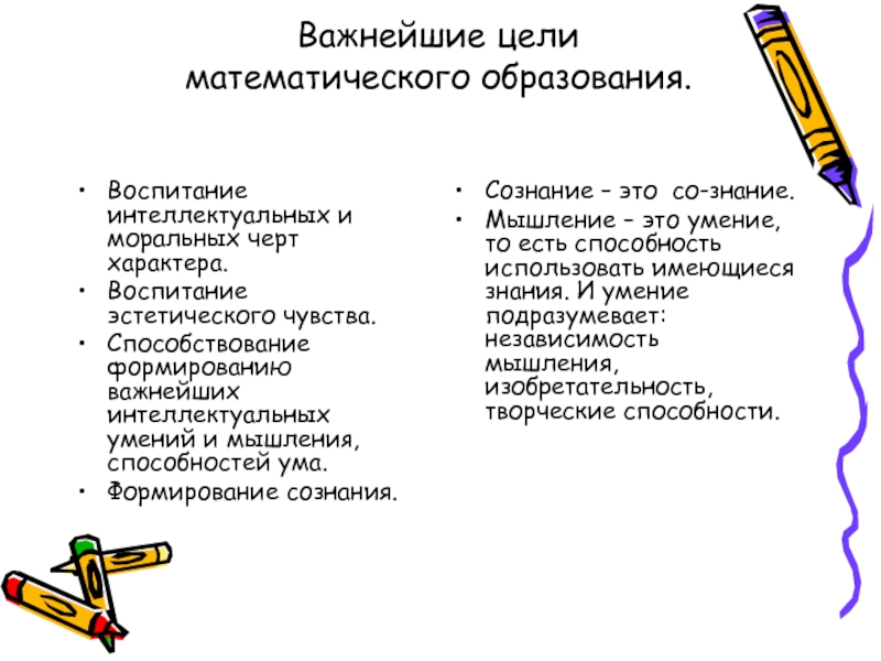 Слайд 4Важнейшие цели математического образования.