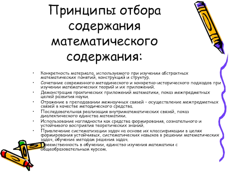 Слайд 27Принципы отбора содержания математического содержания: