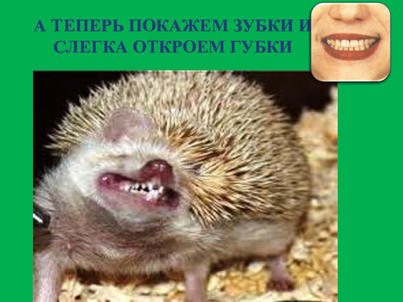 Слайд 15А ТЕПЕРЬ ПОКАЖЕМ ЗУБКИ И СЛЕГКА ОТКРОЕМ ГУБКИ