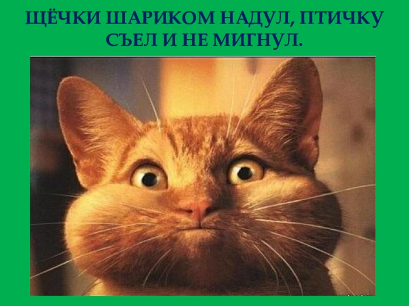 Слайд 11ЩЁЧКИ ШАРИКОМ НАДУЛ, ПТИЧКУ СЪЕЛ И НЕ МИГНУЛ.