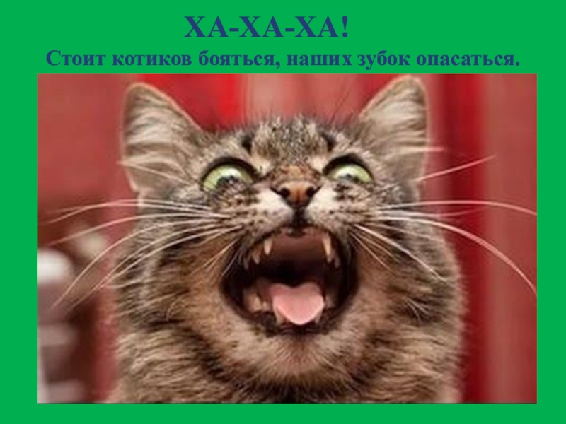 Слайд 7ХА-ХА-ХА! Стоит котиков бояться, наших зубок опасаться.