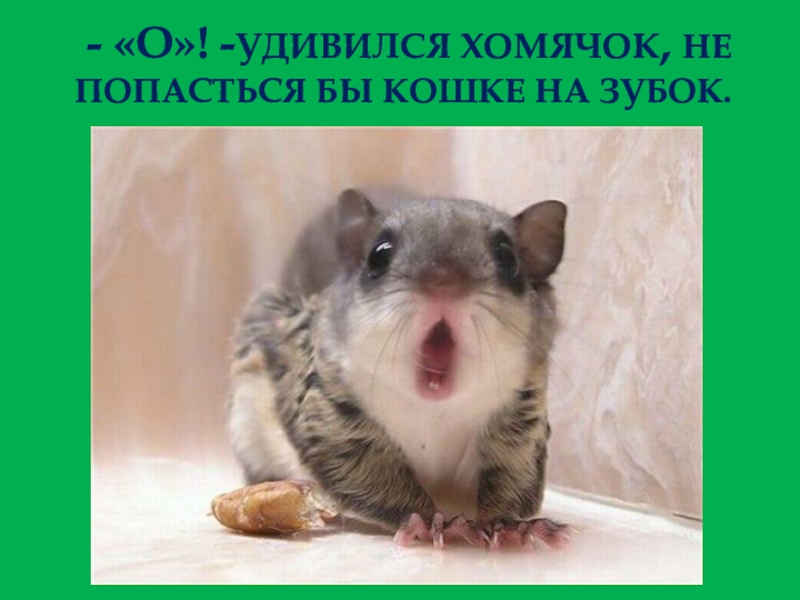 Слайд 12 - «О»! -УДИВИЛСЯ ХОМЯЧОК, НЕ ПОПАСТЬСЯ БЫ КОШКЕ НА ЗУБОК.