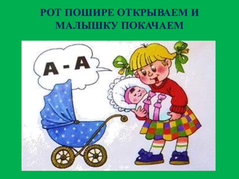 Слайд 4РОТ ПОШИРЕ ОТКРЫВАЕМ И МАЛЫШКУ ПОКАЧАЕМ