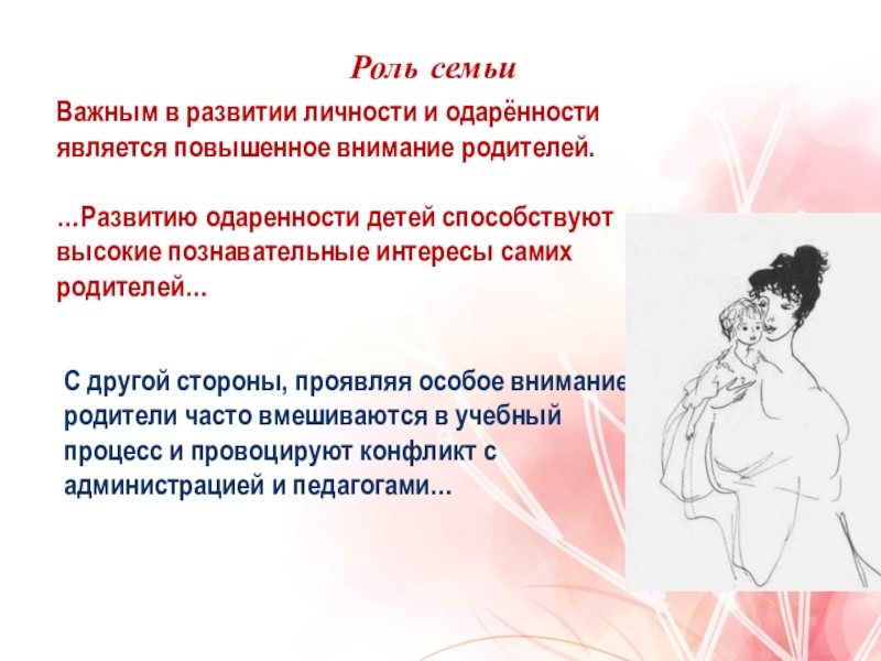 С другой стороны, проявляя особое внимание, родители часто вмешиваются в учебный процесс и провоцируют конфликт с администрацией и педагогами…
