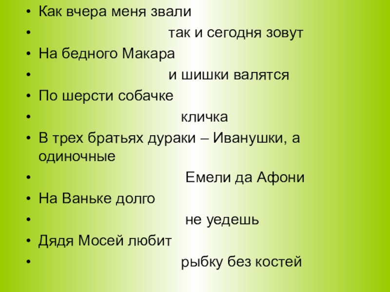 Фольклорный конкурс. Продолжить пословицу об именах