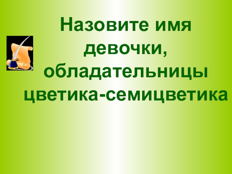 Слайд 34Назовите имя девочки, обладательницы цветика-семицветика