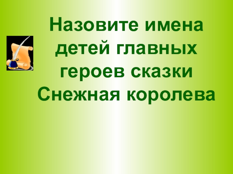 Слайд 32Назовите имена детей главных героев сказки Снежная королева