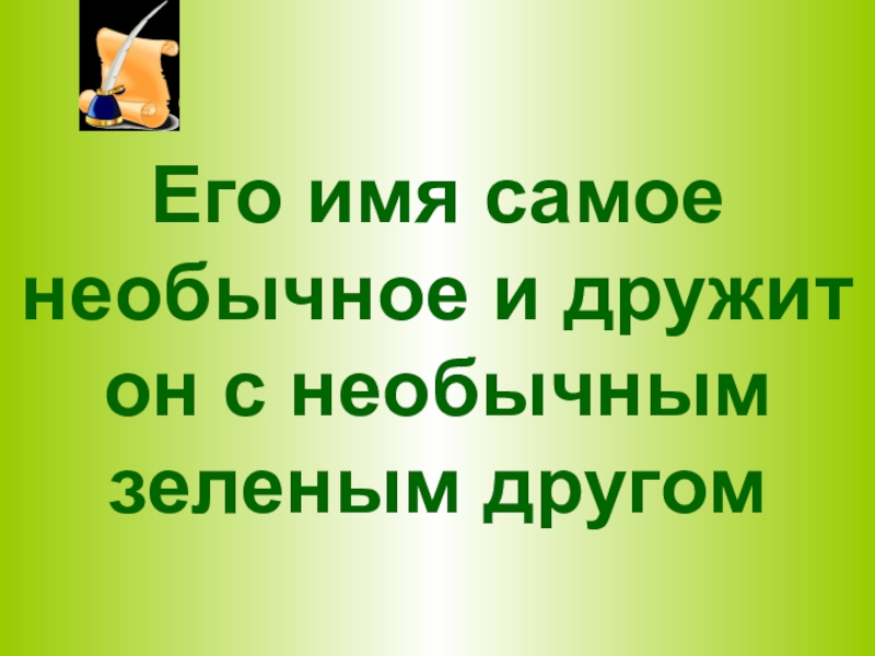 Слайд 18Его имя самое необычное и дружит он с необычным зеленым другом