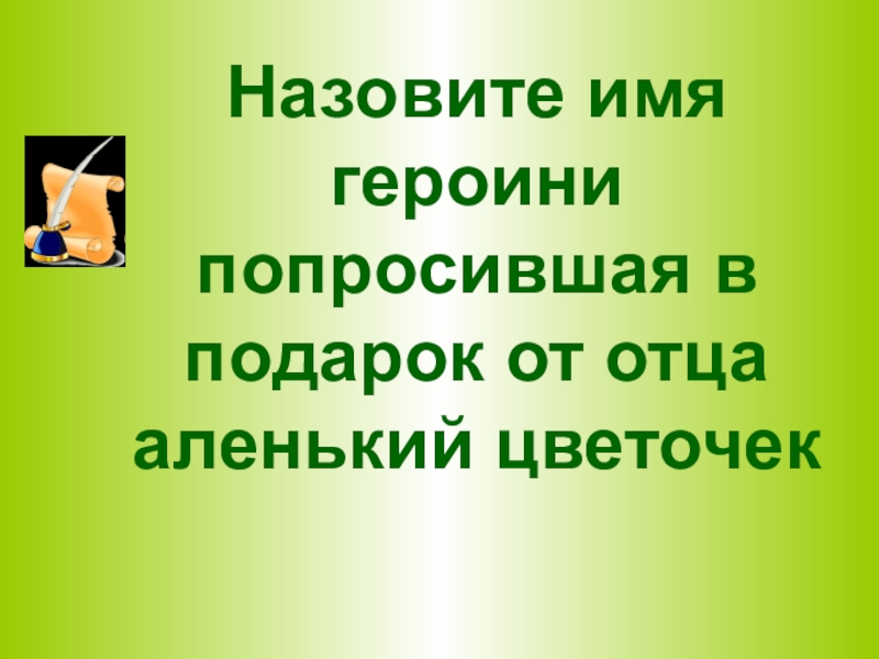 Слайд 28Назовите имя героини попросившая в подарок от отца аленький цветочек