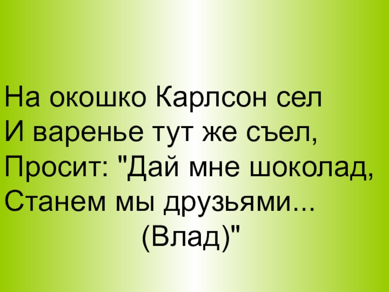 На окошко Карлсон селИ варенье тут же съел,Просит: