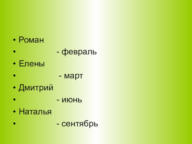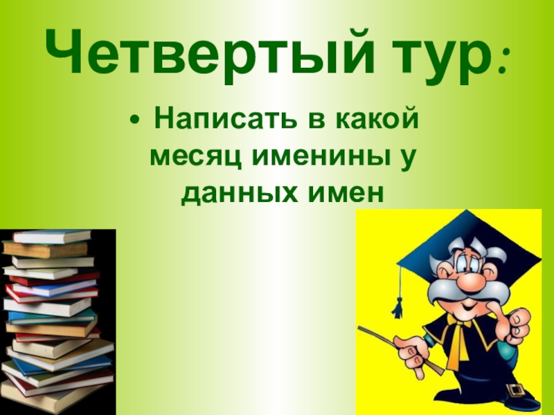 Четвертый тур: Написать в какой месяц именины у данных имен