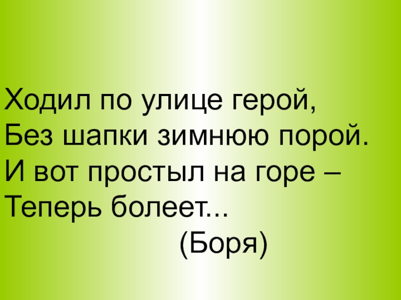 Ходил по улице герой,          Без шапки зимнюю порой.
