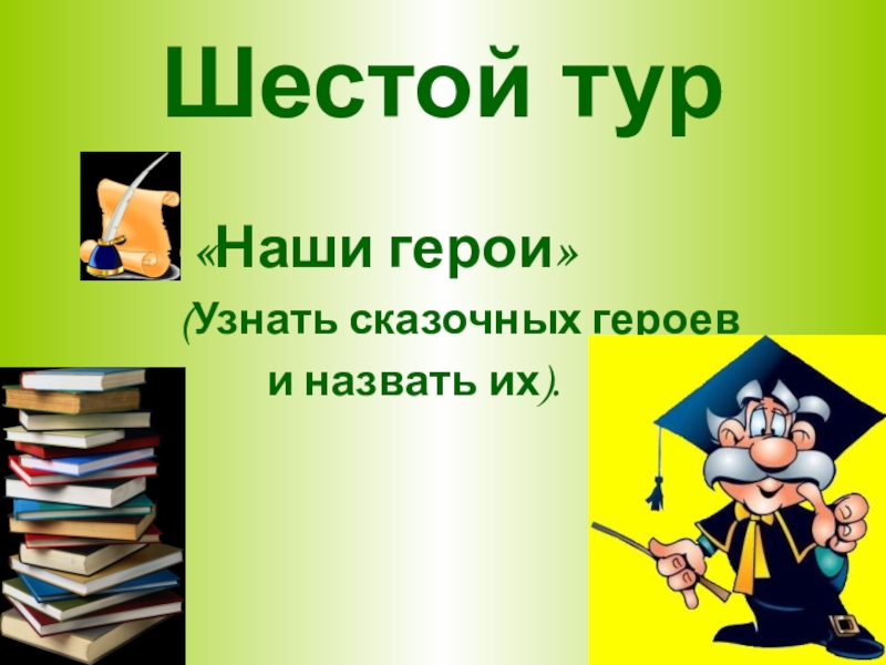 Шестой тур «Наши герои»(Узнать сказочных героев     и назвать их).