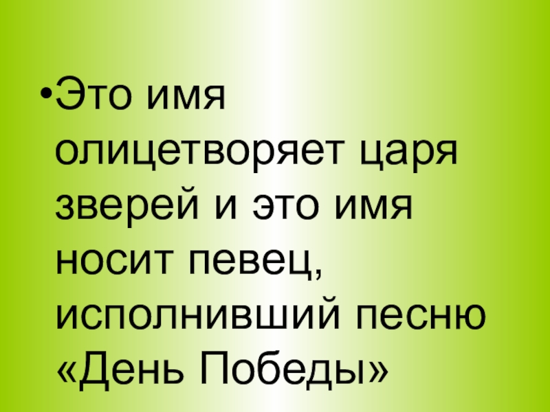 Это имя олицетворяет царя зверей и это имя носит певец, исполнивший песню «День Победы»
