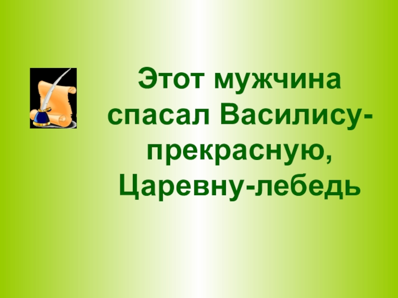 Слайд 20Этот мужчина спасал Василису-прекрасную, Царевну-лебедь