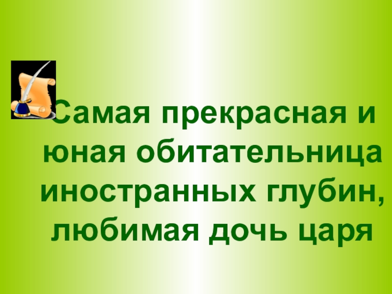 Слайд 46Самая прекрасная и юная обитательница иностранных глубин, любимая дочь царя