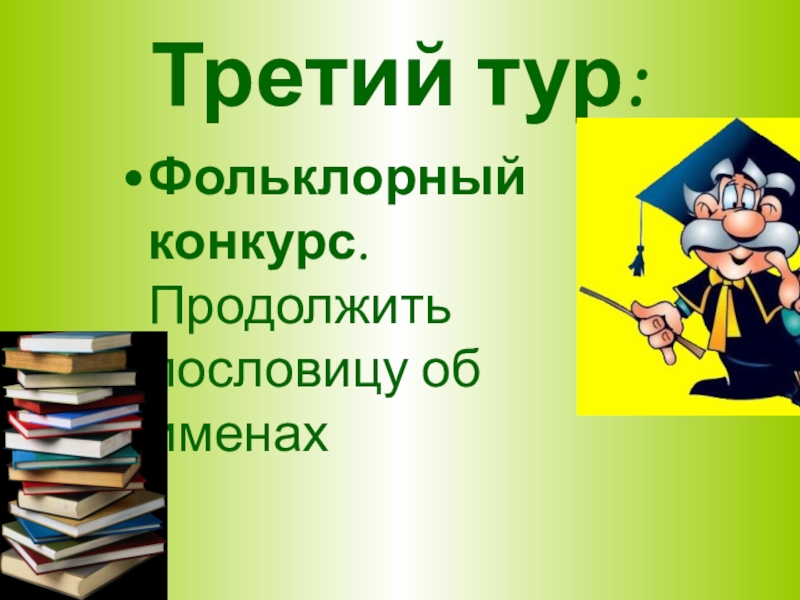 Третий тур:Фольклорный конкурс. Продолжить пословицу об именах