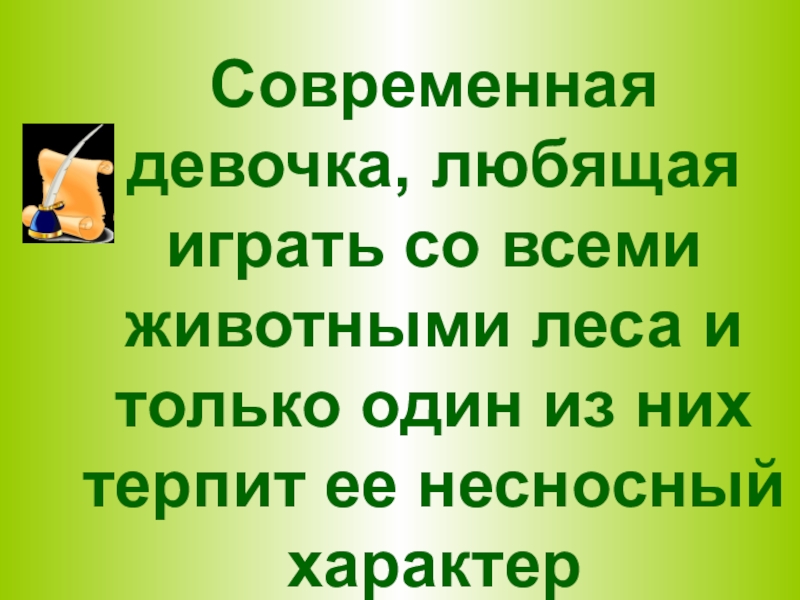Слайд 24Современная девочка, любящая играть со всеми животными леса и только один
