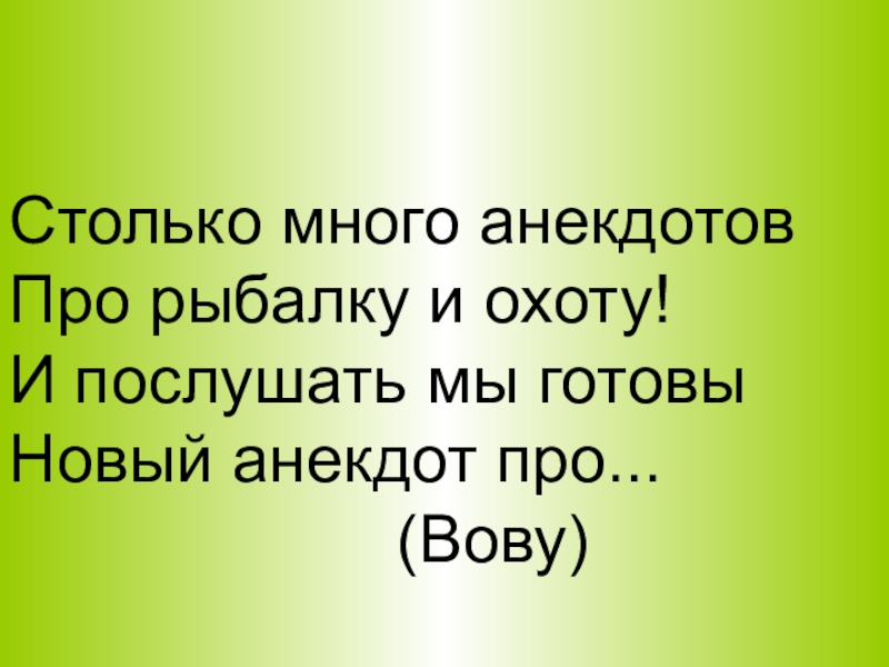 Столько много анекдотовПро рыбалку и охоту!