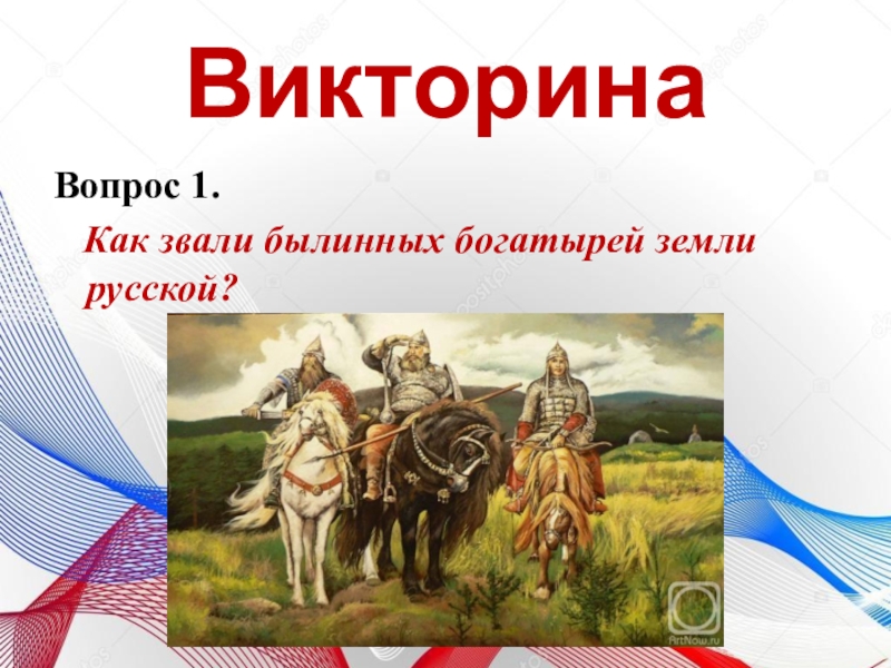 ВикторинаВопрос 1.  Как звали былинных богатырей земли русской?