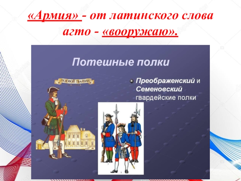 Слайд 17«Армия» - от латинского слова агто - «вооружаю».