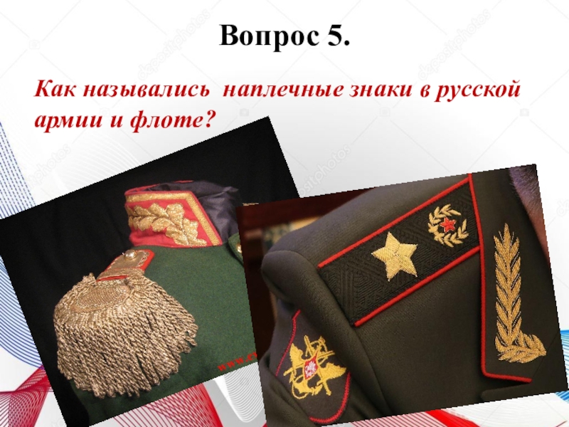 Вопрос 5.  Как назывались наплечные знаки в русской армии и флоте?