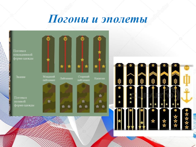 Слайд 16Погоны и эполеты