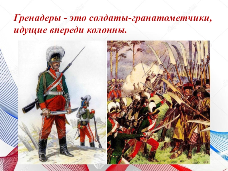 Слайд 21Гренадеры - это солдаты-гранатометчики, идущие впереди колонны.