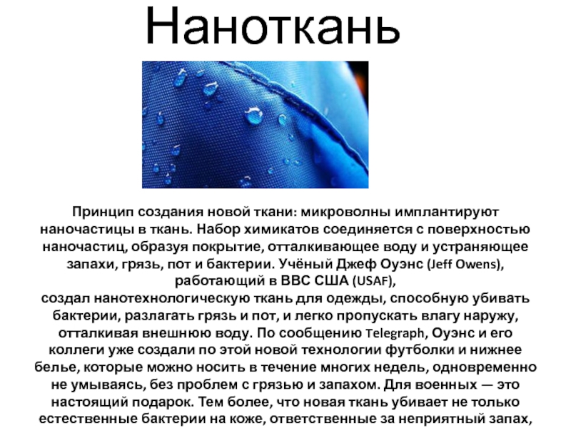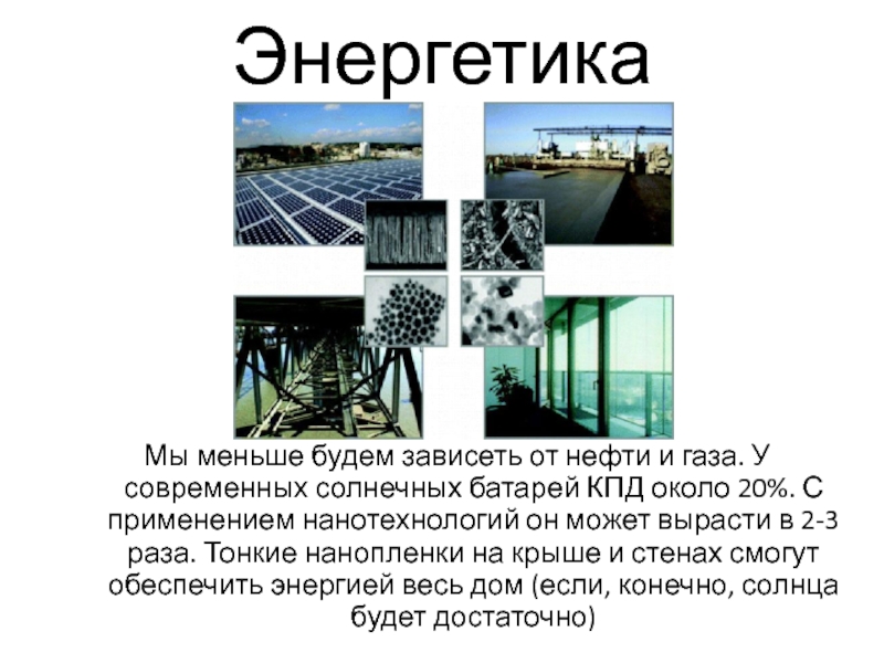 Использование нанотехнологий в разных областях жизни, науки, технике.