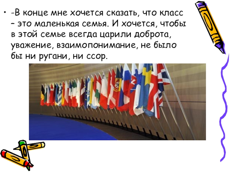 Слайд 10-В конце мне хочется сказать, что класс – это маленькая семья.