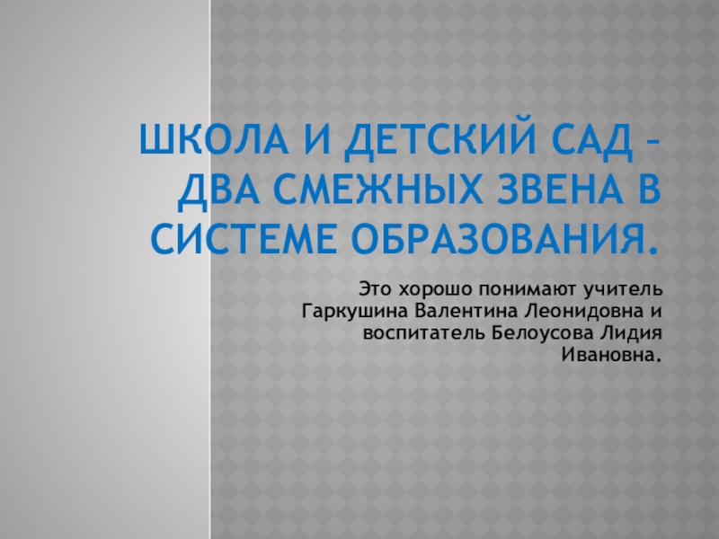 Это хорошо понимают учитель Гаркушина Валентина Леонидовна и воспитатель Белоусова Лидия Ивановна.