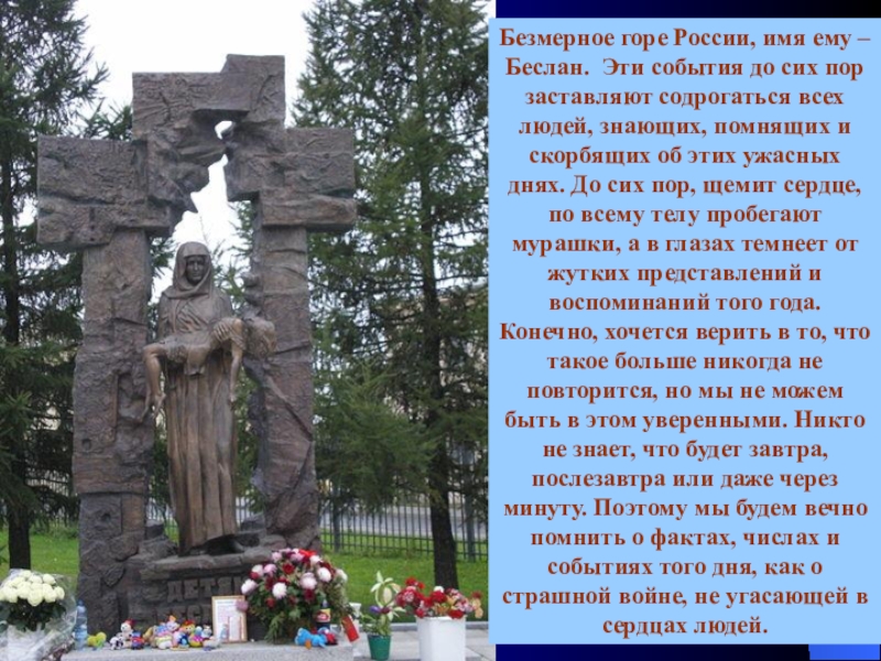 Слайд 53Безмерное горе России, имя ему – Беслан. Эти события до сих