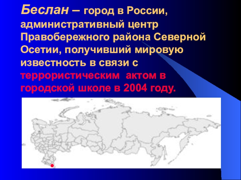 Слайд 3Беслан – город в России, административный центр Правобережного района Северной Осетии,