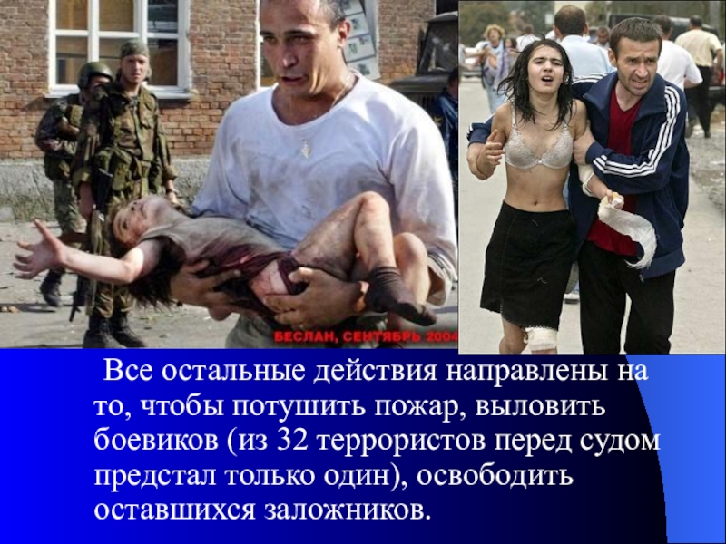 Слайд 19 Все остальные действия направлены на то, чтобы потушить пожар, выловить боевиков