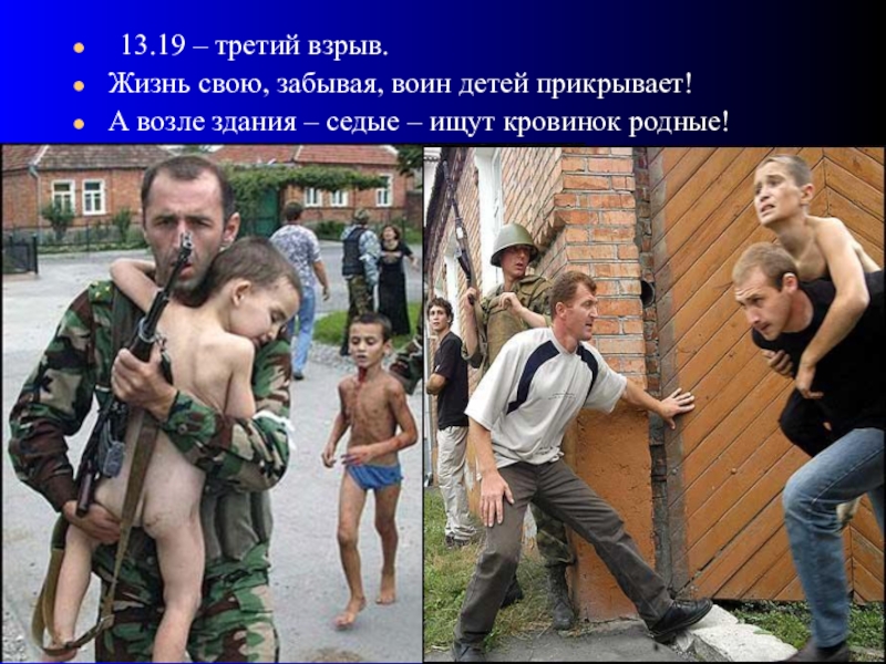 Слайд 18 13.52 – в здание входит спецназ, продолжается бой. Боевики пытаются выбраться